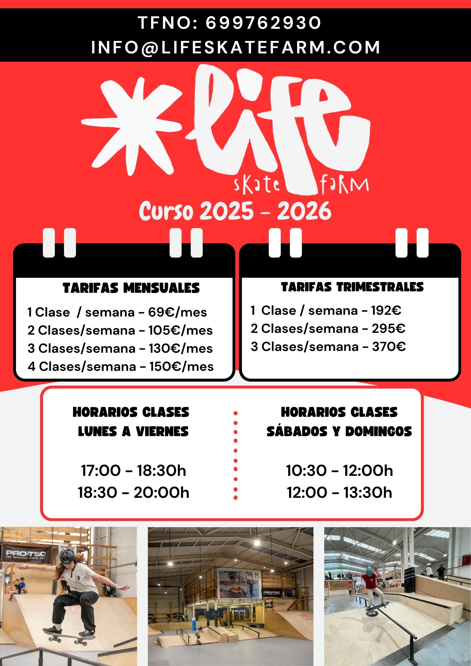 Martes y Jueves clases de skate de 20:00 a 21:30.